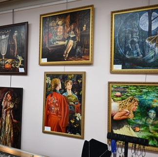 “I don’t see any of these things. The paintings are my imagination,” she adds. There is a demand in her clientele, though, for painted representations of absent family members and lost pets. Kathryn is happy to oblige. Commissioned portraits are a large part of her business. “Last week, everybody who walked in wanted a dog portrait,” she notes wryly.